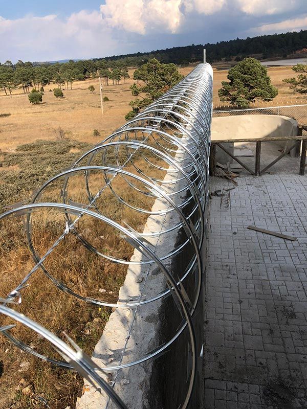 La concertina es un tipo de alambre de alta seguridad que se utiliza como complemento de la malla ciclónica o como una medida adicional de protección.
